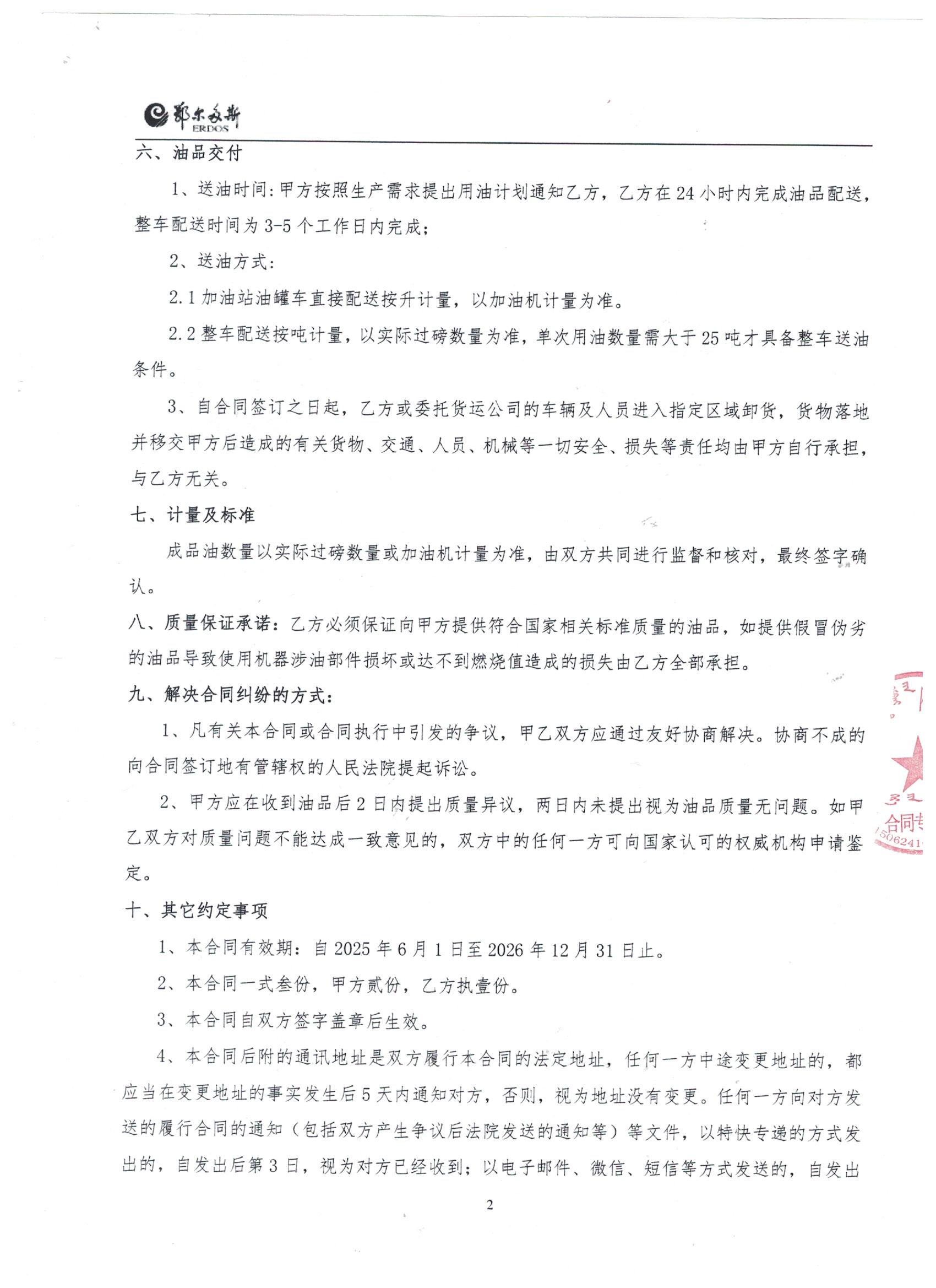 供应商(乙方):内蒙古鄂尔多斯物流有限公司