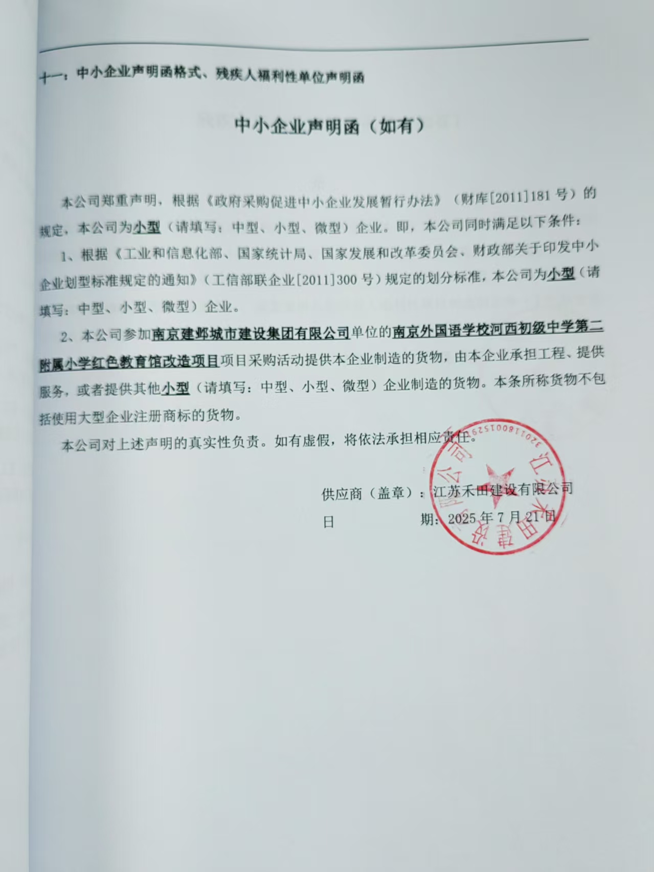 供应商名称:江苏禾田建设有限公司