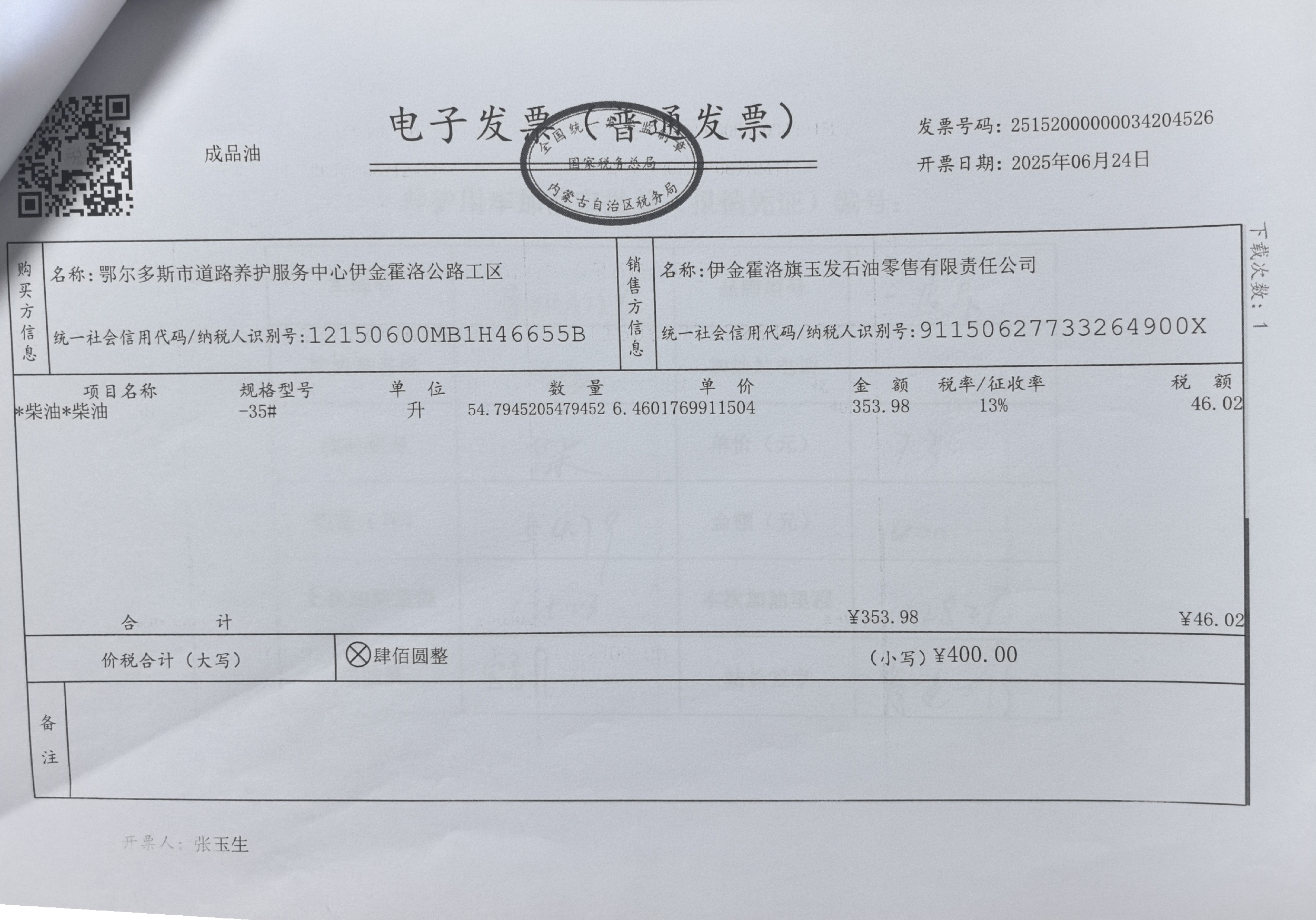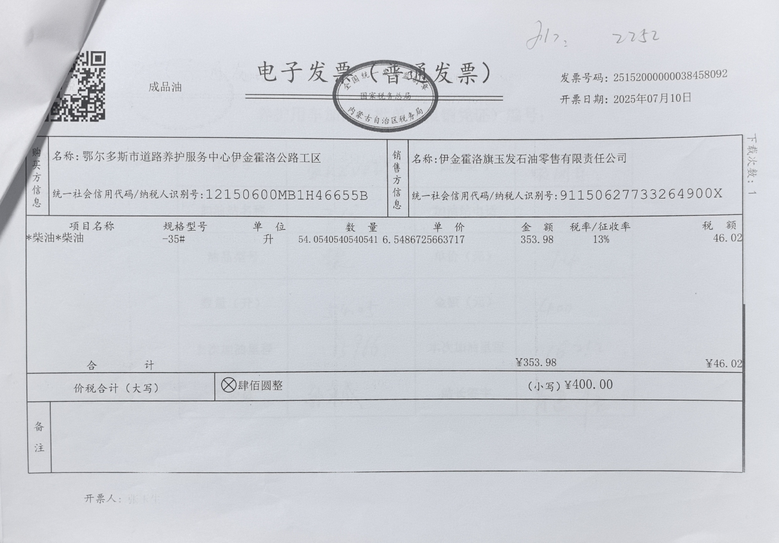 鄂尔多斯市道路养护服务中心伊金霍洛公路工区车辆加油(新街养护站)政府采购合同公告