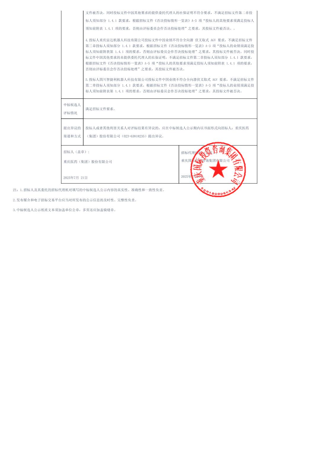 | 名称: | 重庆医药进口分销物流综合基地项目(一、二期)物流工艺设备(第二批)二标段(第二次)中标候选人公示表 | ||||