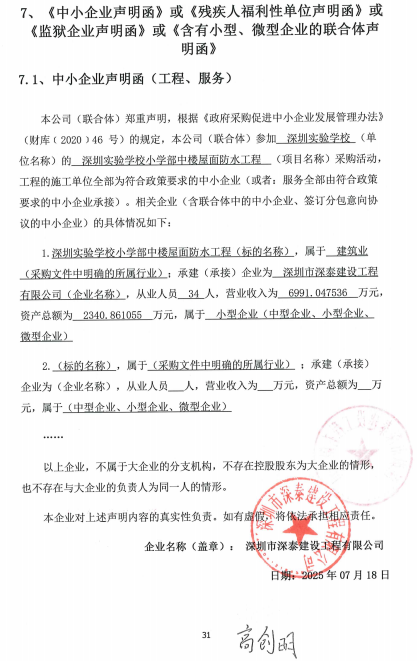 二、项目名称:深圳实验学校小学部中楼屋面防水工程