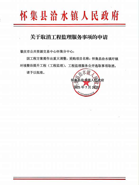 关于【怀集县洽水镇圩镇环境整治提升工程(监理)】采购失败项目的公示