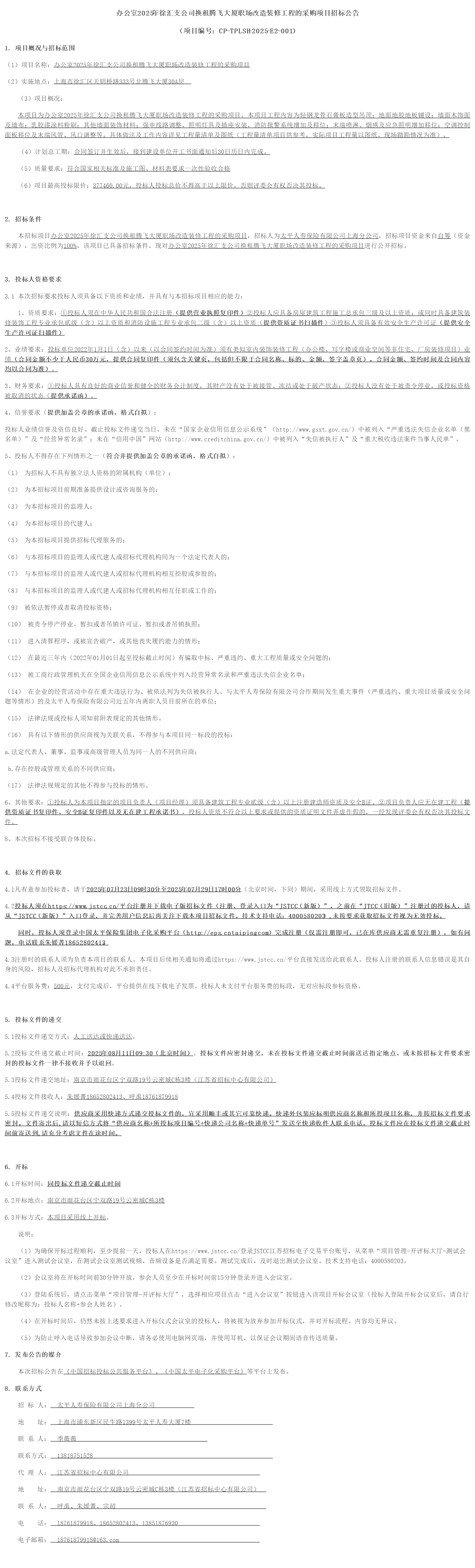 办公室****年徐汇支公司换租腾飞大厦职场改造装修工程的采购项目招标公告