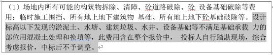 回复:包含施工范围内的所有场地清理及平整清理内容,请投标单位自行踏勘现场。