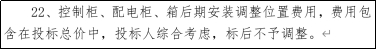 回复:控制价编制时已结合施工现场和施工图纸按实计入,未尽事宜详见施工图纸、技术规范及图纸答疑要求;控制柜、配电柜、箱等位置调整导致的线缆增减工程量执行合同条款按实结算;供水、供电、两网、有线等管线外接,需破除和修复市政道路接引点的,相关破复费用、手续的办理费用由总包单位负责,清单控制价编制时已结合现场实际情况,已按项计入。