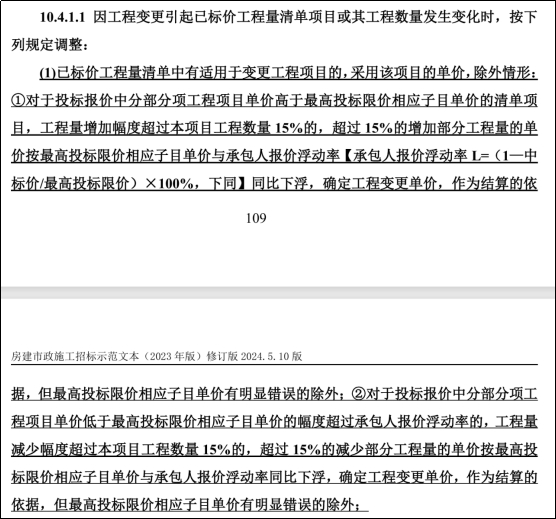 按单价合同规定,所谓单价合同应综合单价不变,只有工程量增减,而上图中规定工程量增减超**%,综合单价可变。这与单价合同规定相违背。