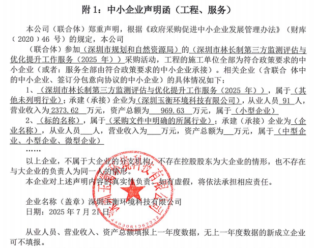 *.供应商名称:深圳玉衡环境科技有限公司