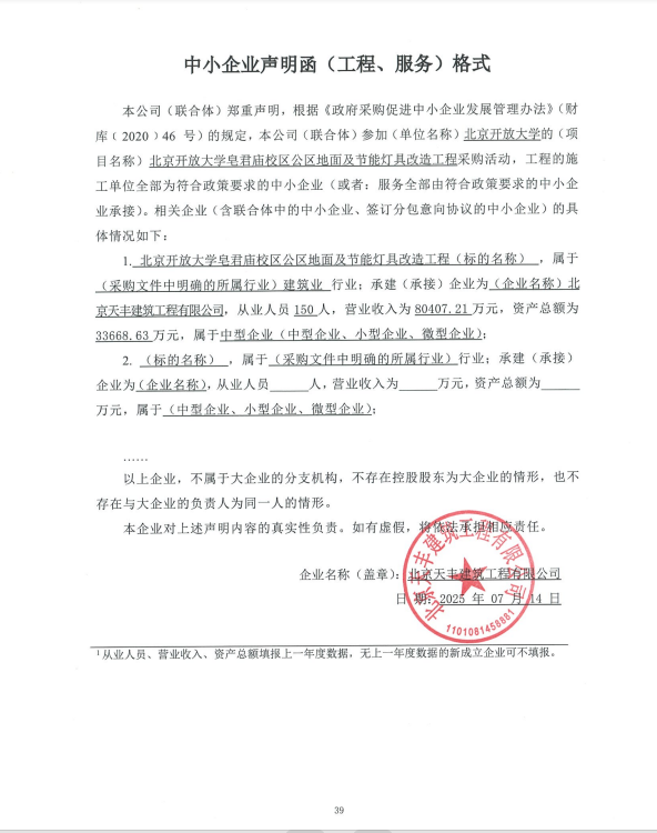 中标成交供应商名称:北京天丰建筑工程有限公司