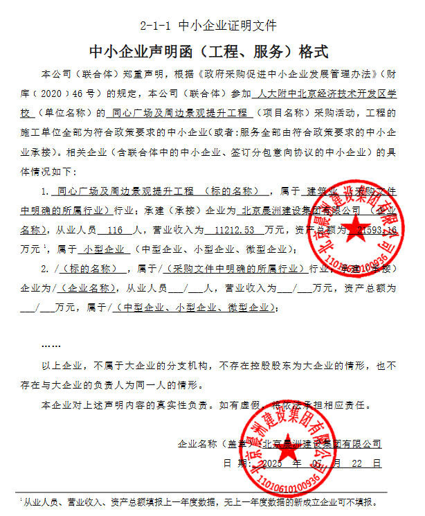 中标成交供应商名称:北京晨洲建设集团有限公司