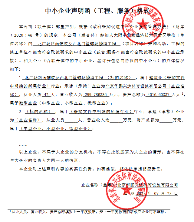 | 北京华鹏兴达体育设施有限公司 | * | ***.*****万元 | ***.*****万元 | 详见附件 |