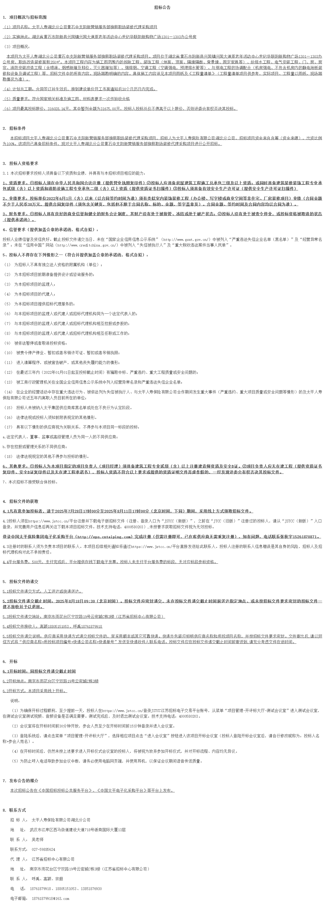 招 标 人: 太平人寿保险有限公司湖北分公司
