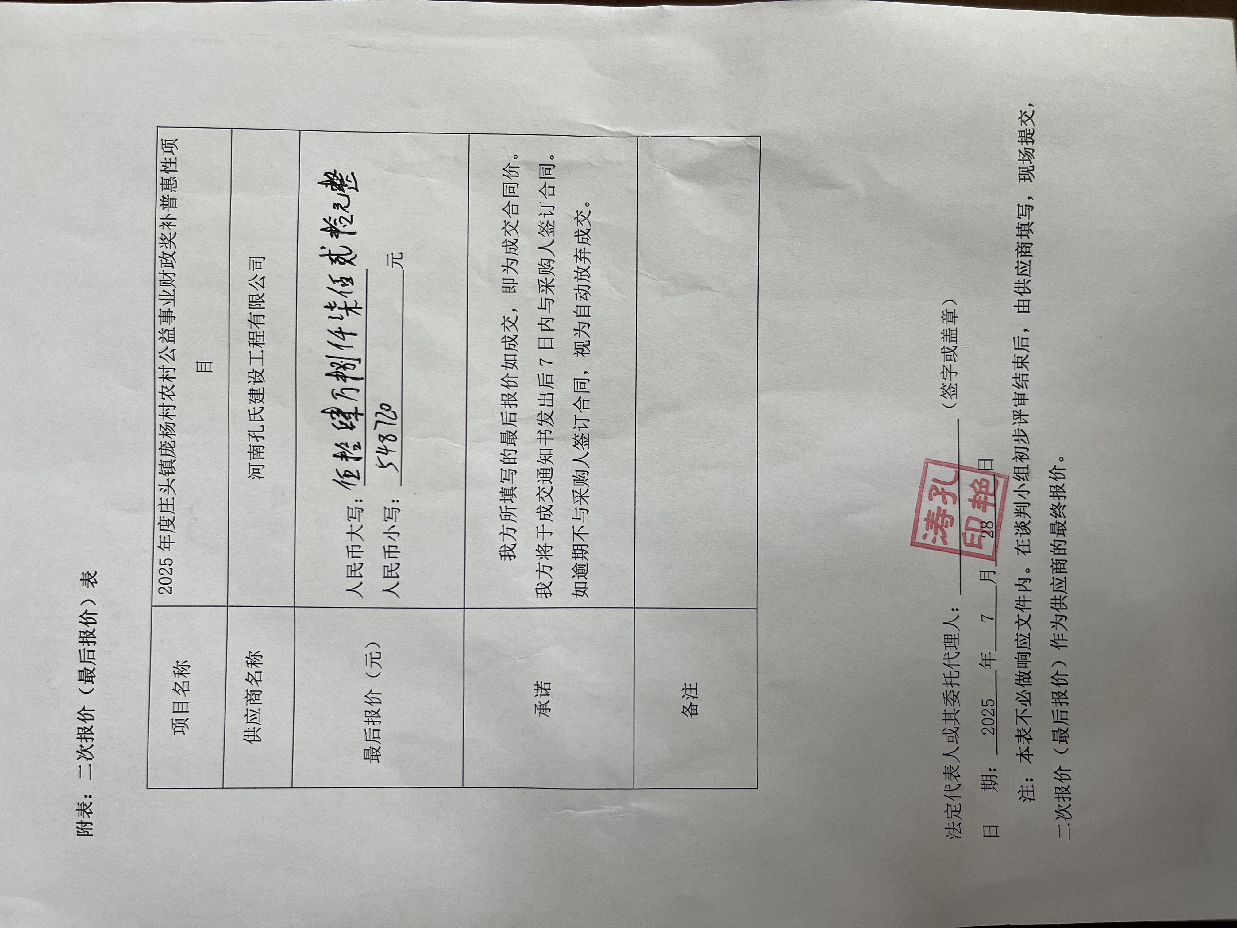 2025年度庄头镇庞杨村农村公益事业财政奖补普惠性项目-成交公告