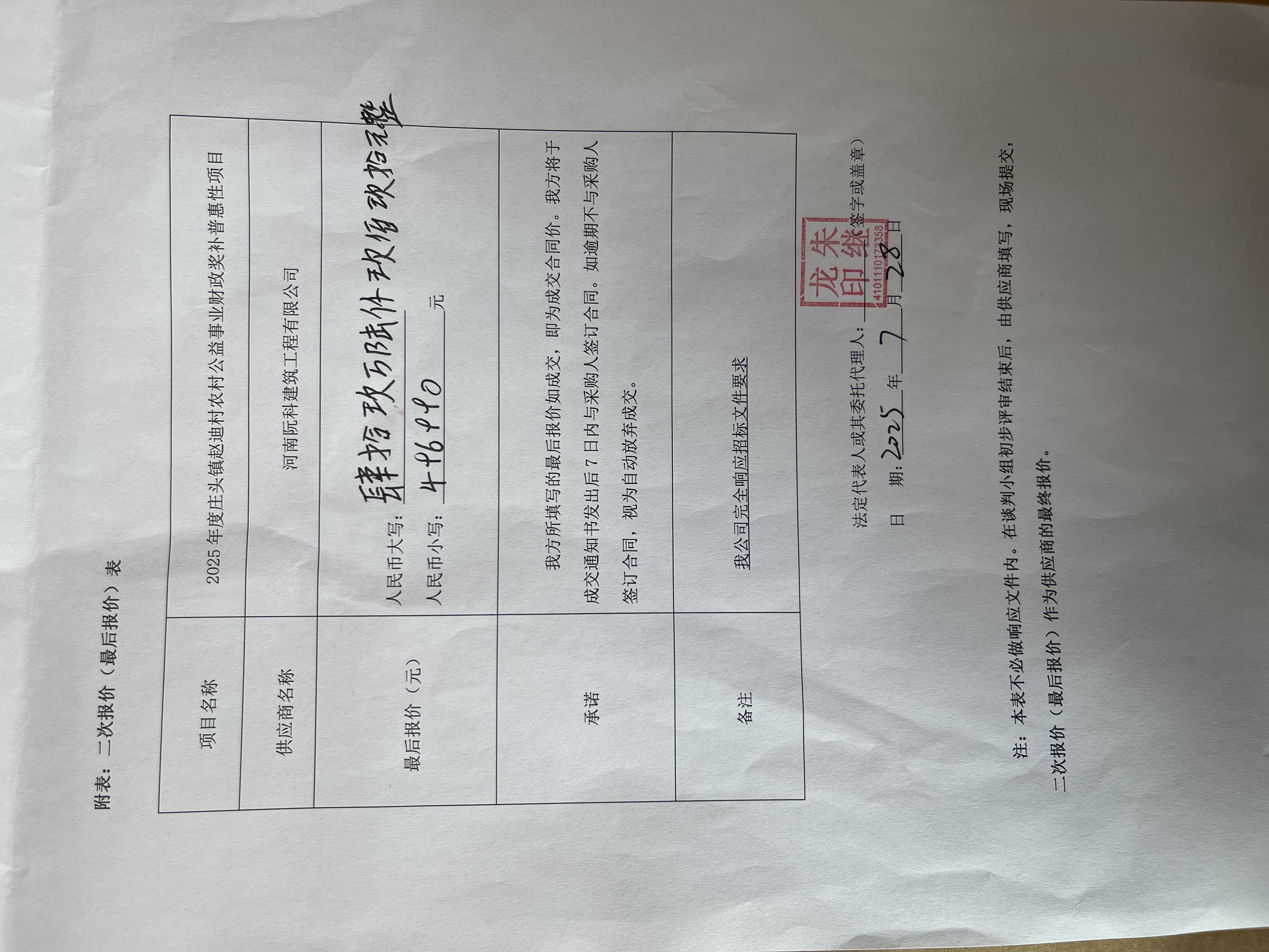 2025年度庄头镇赵迪村农村公益事业财政奖补普惠性项目-成交公告