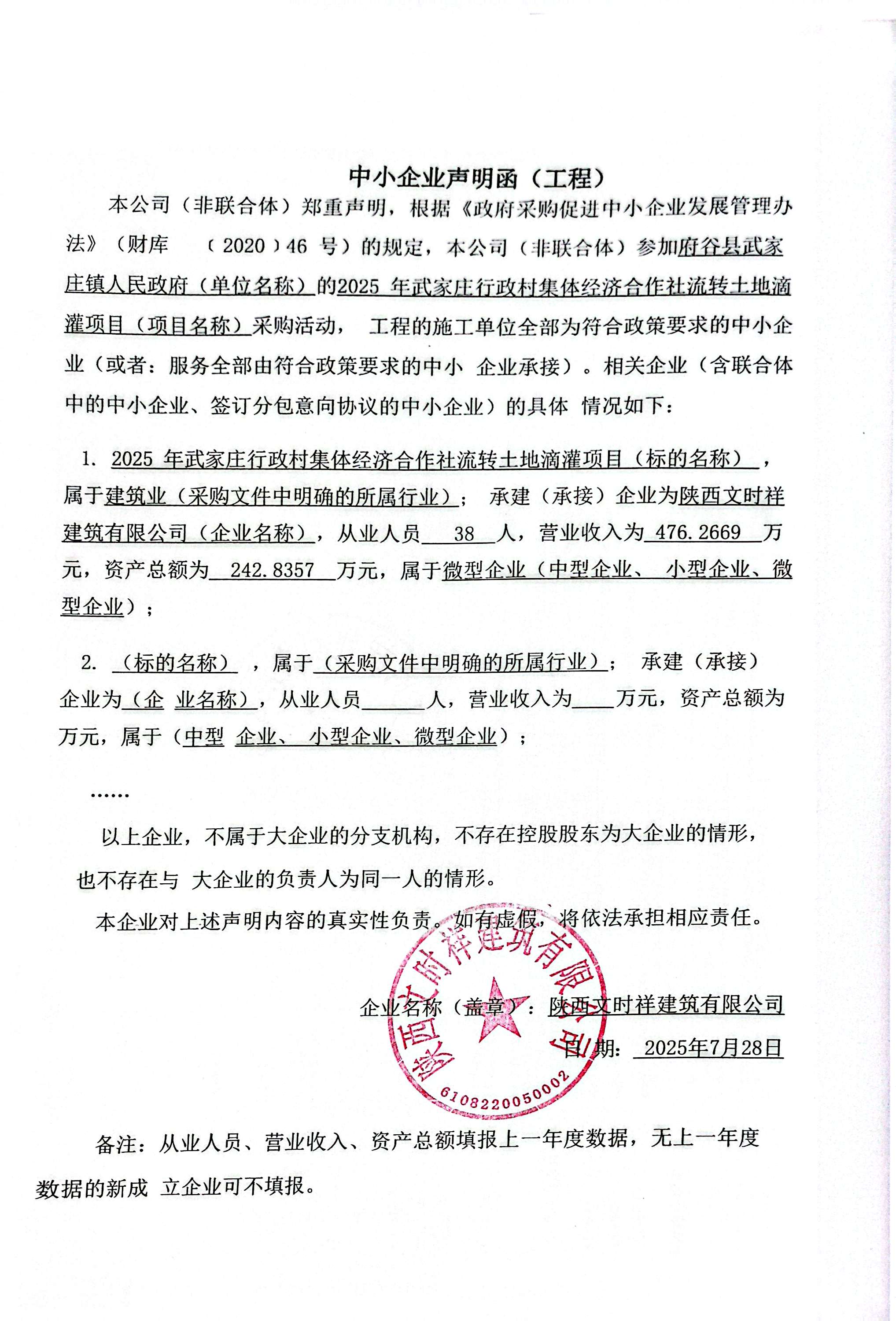 2025年武家庄行政村集体经济合作社流转土地滴灌项目中标(成交)结果公告