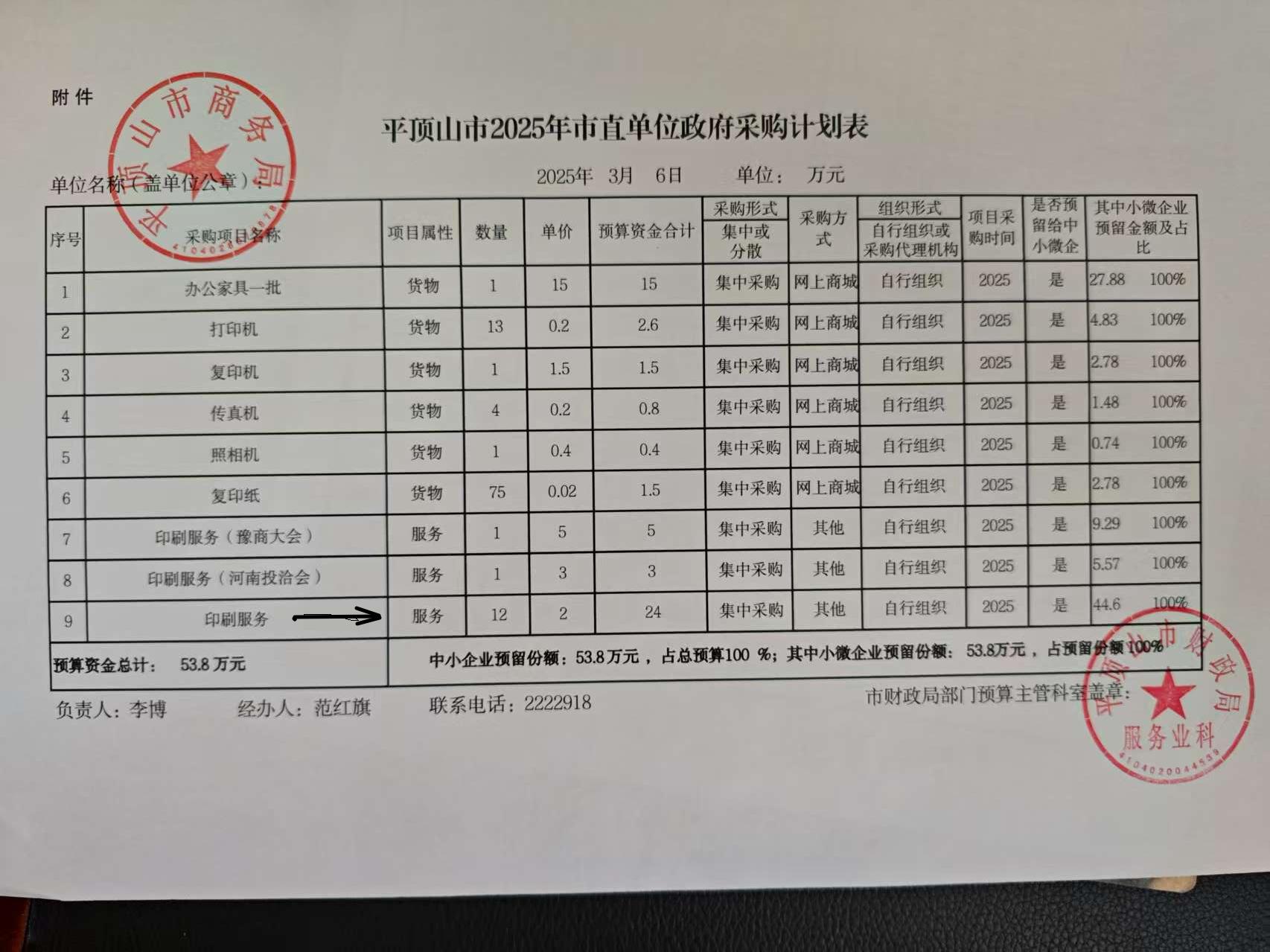 平顶山市商务局印刷品采购项目