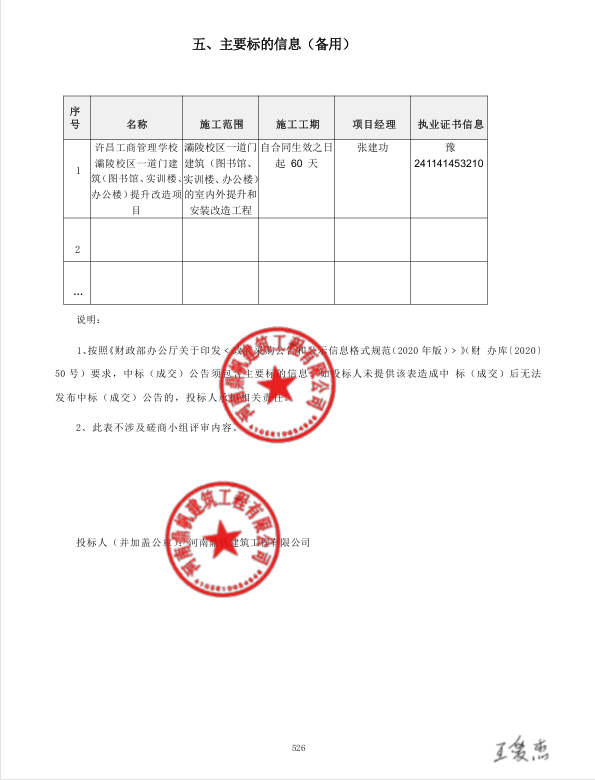 *************号许昌工商管理学校“许昌工商管理学校灞陵校区一道门建筑(图书馆、实训楼、办公楼)提升改造项目”成交公告