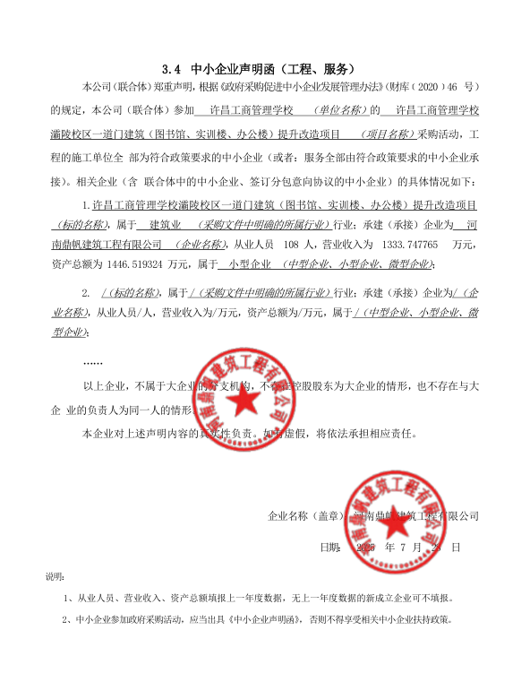 | *、采购项目名称:许昌工商管理学校灞陵校区一道门建筑(图书馆、实训楼、办公楼)提升改造项目 | |||||||||||||||||||||||||||||||