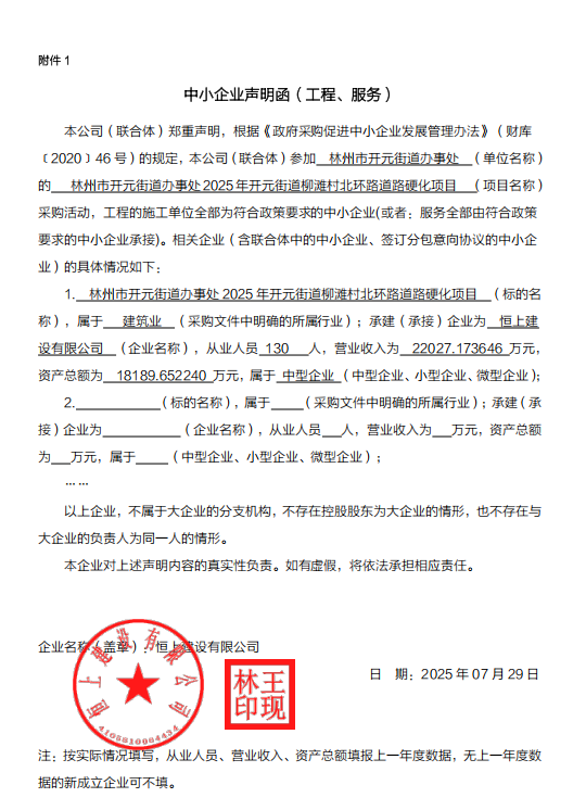 林州市开元街道办事处2025年开元街道柳滩村北环路道路硬化项目-成交公告