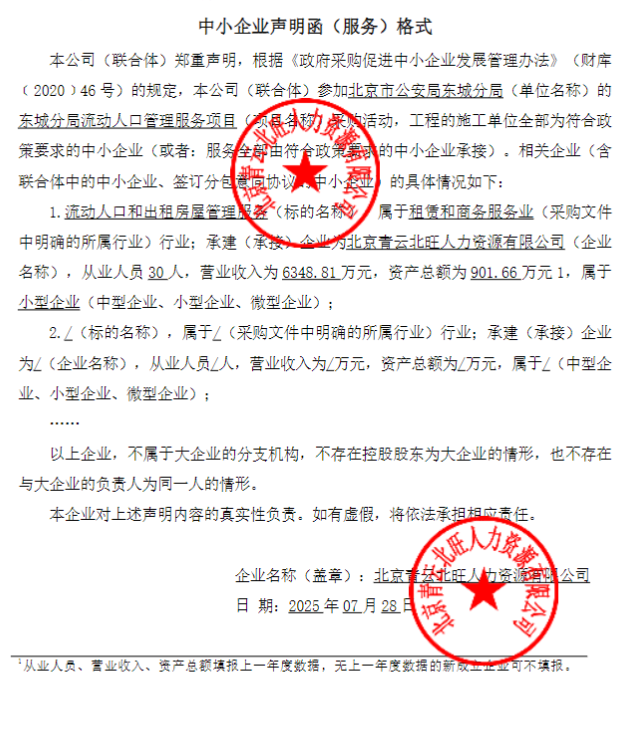 | 北京青云北旺人力资源有限公司 | * | ****.***万元 | ****.***万元 | 详见采购需求 |