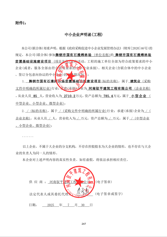 舞钢市国有石漫滩林场苗圃基础设施建设项目*成交公告