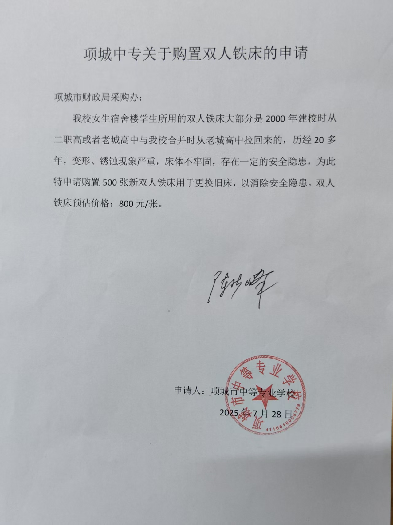 项城市中等专业学校2025年7月政府采购意向