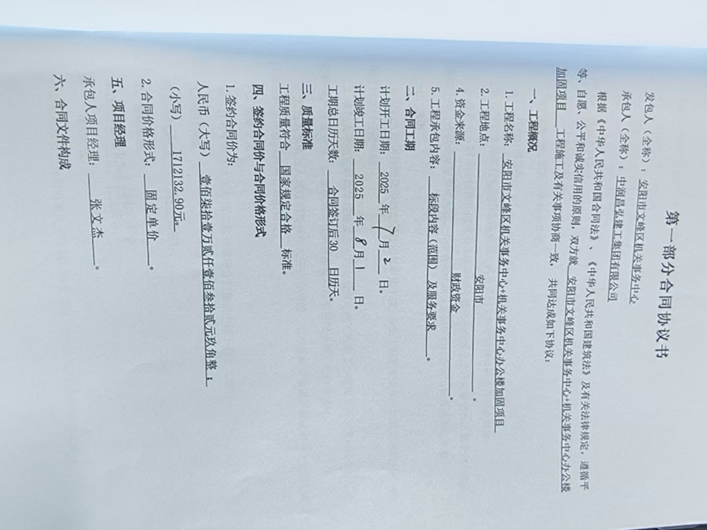 | 合同名称:安阳市文峰区机关事务中心+机关事务中心办公楼加固项目 |