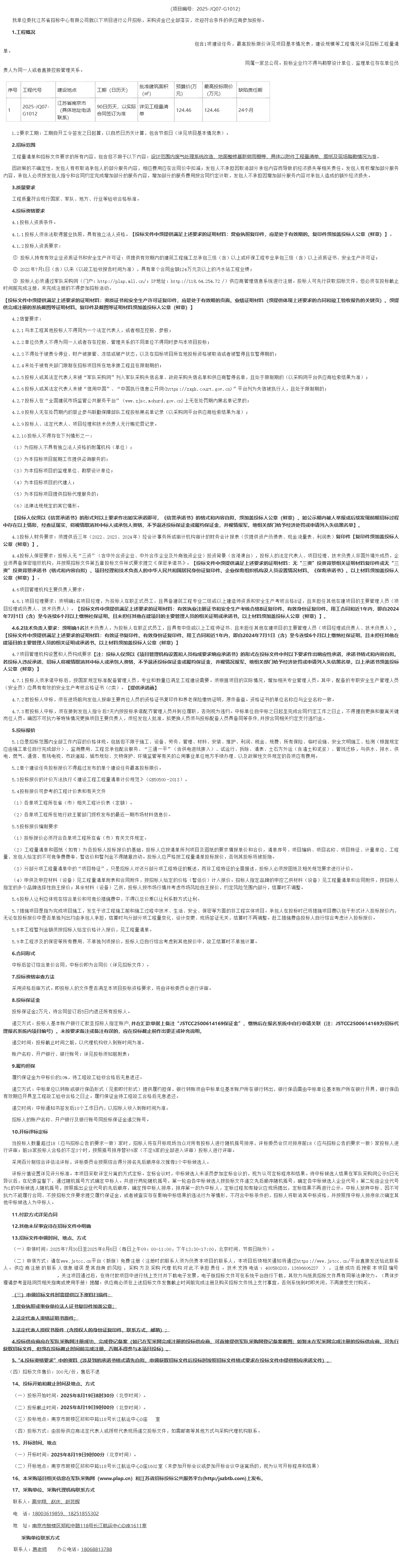 | * | *************** | 江苏省南京市(具体地址电话联系) | **日历天,以实际合同签订为准 | 详见工程量清单 | ***.** | ***.** | **个月 |