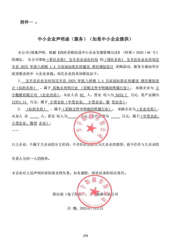 宝丰县农业农村局宝丰县2025年张八桥镇1.4万亩高标准农田建设项目规划设计-成交公告