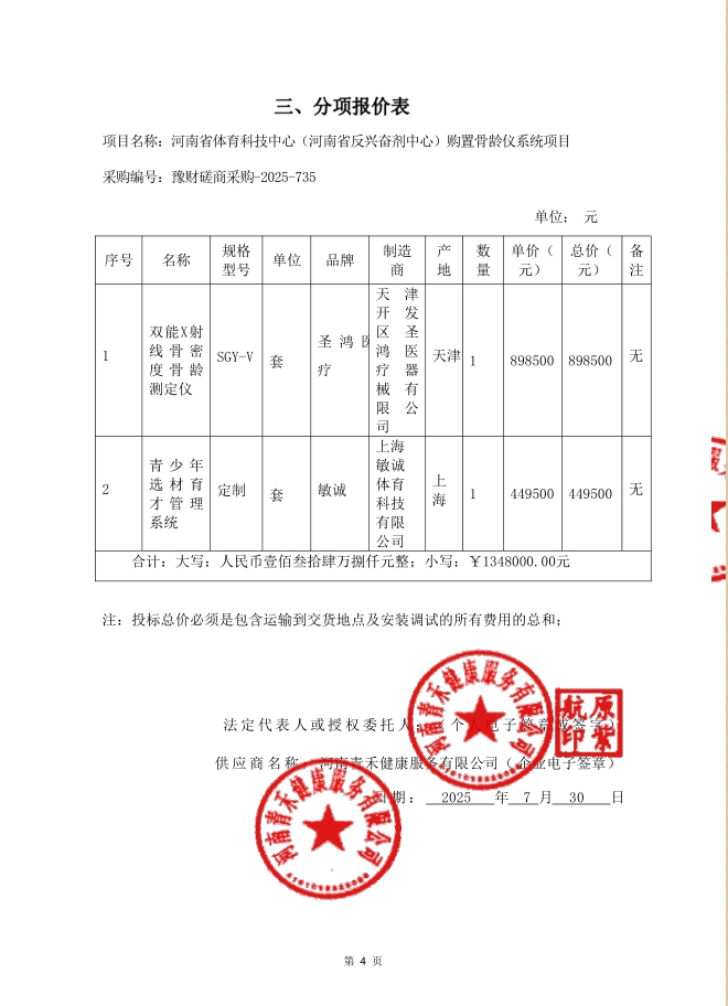 河南省体育科技中心(河南省反兴奋剂中心)购置骨龄仪系统项目*成交公告