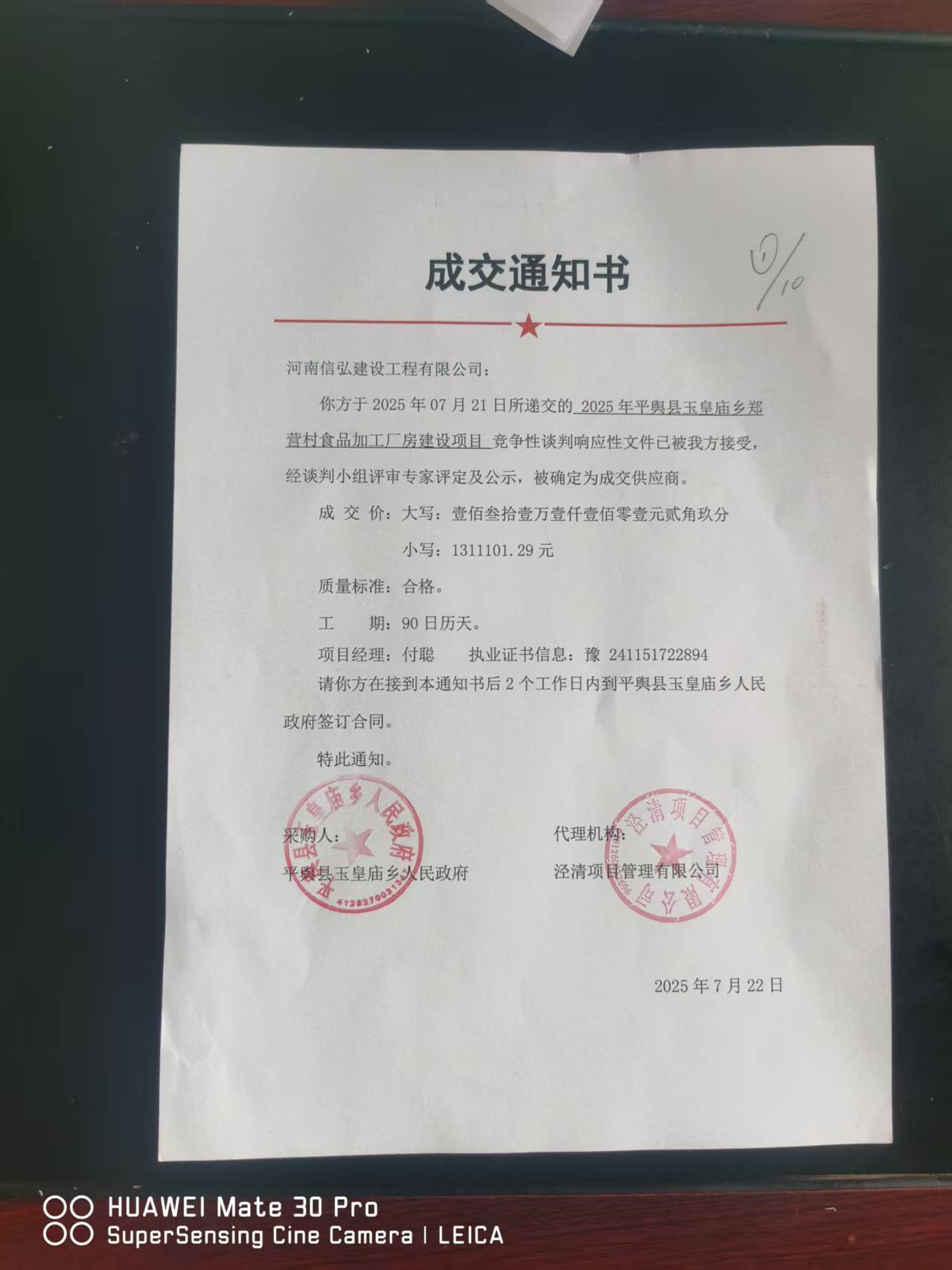 河南/驻马店 中标结果