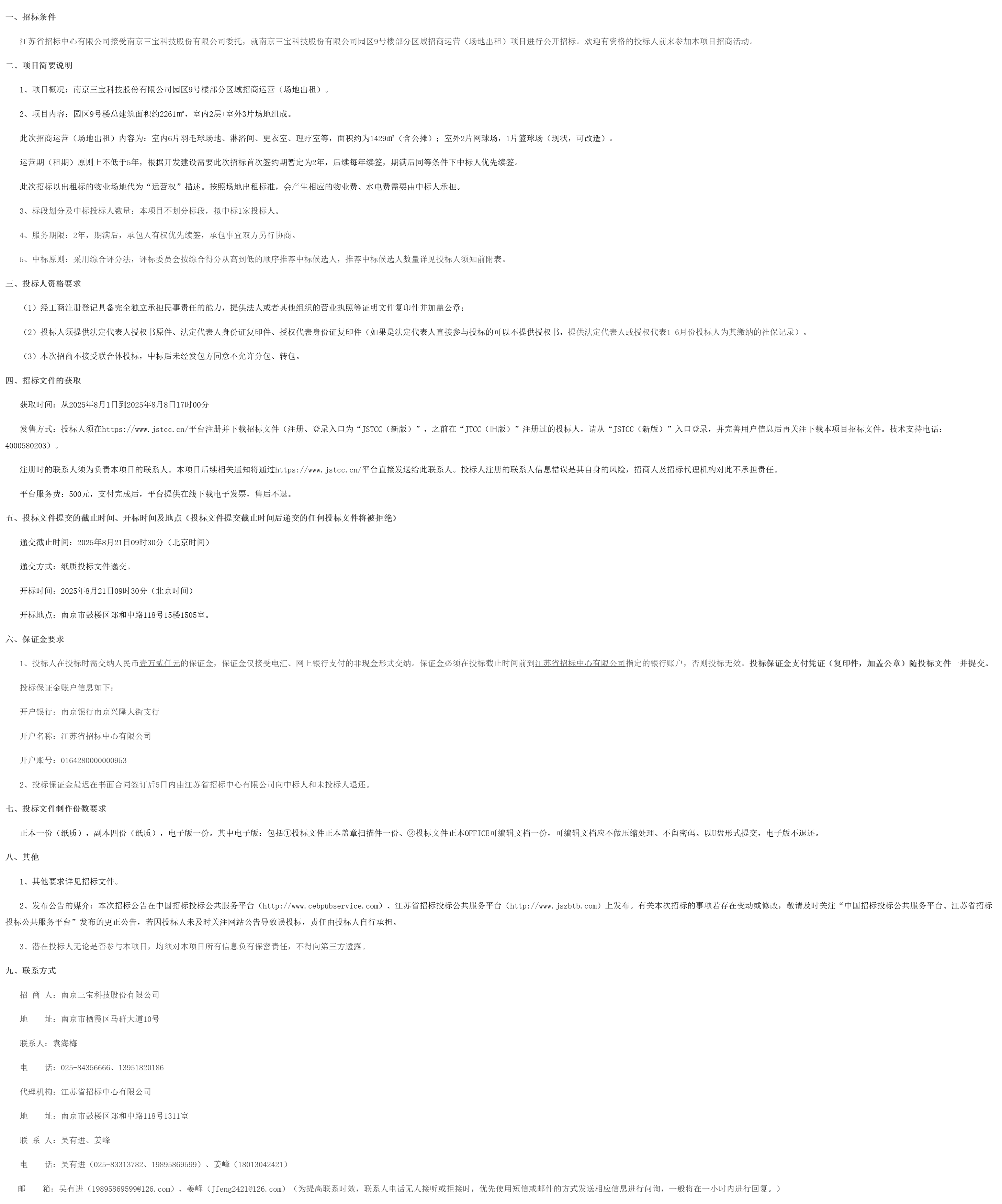 南京三宝科技股份有限公司园区*号楼部分区域招商运营(场地出租)项目招标公告