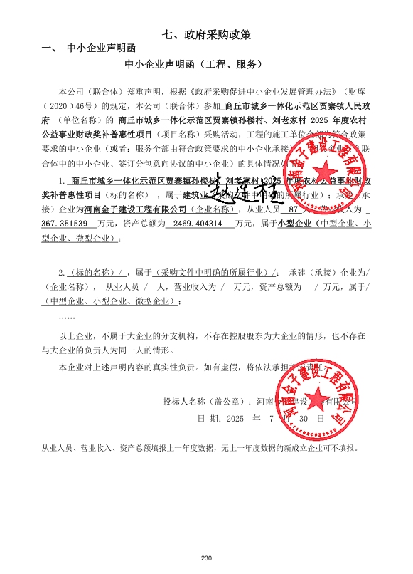 | *、采购项目名称:商丘市城乡一体化示范区贾寨镇人民政府商丘市城乡一体化示范区贾寨镇孙楼村、刘老家村****年度农村公益事业财政奖补普惠性项目 | |||||||||||||||||||||||||||||||