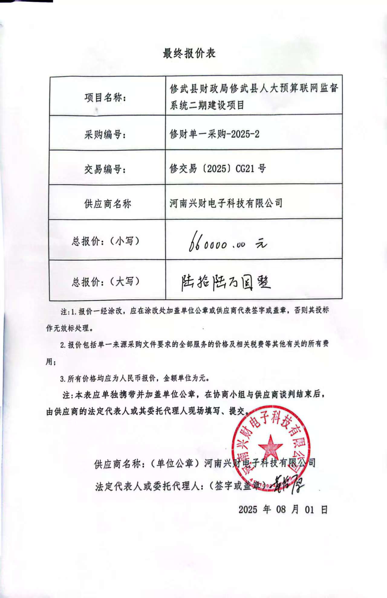 修武县财政局修武县人大预算联网监督系统二期建设项目*成交公告