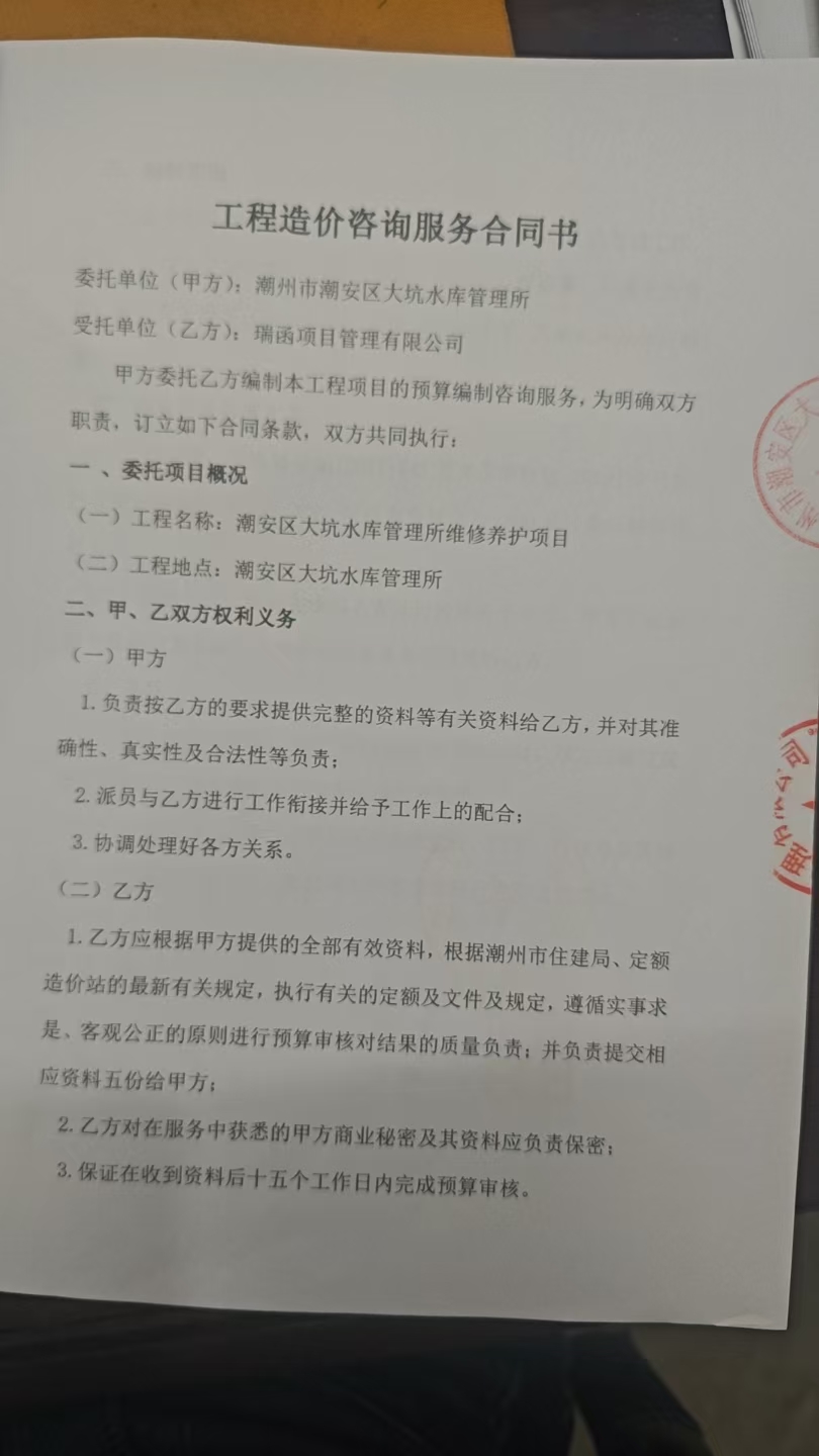 潮安区大坑水库管理所维修养护项目-预算审核合同公开