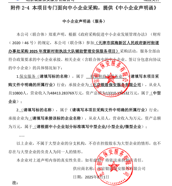 *.项目名称:天津市滨海新区人民政府新村街道办事处采购****年度新村街执法大队辅助管理安保服务项目