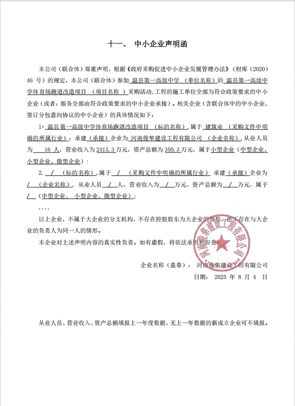 | *、采购项目名称:温县第一高级中学体育场跑道改造项目 | |||||||||||||||||||||||||||||||