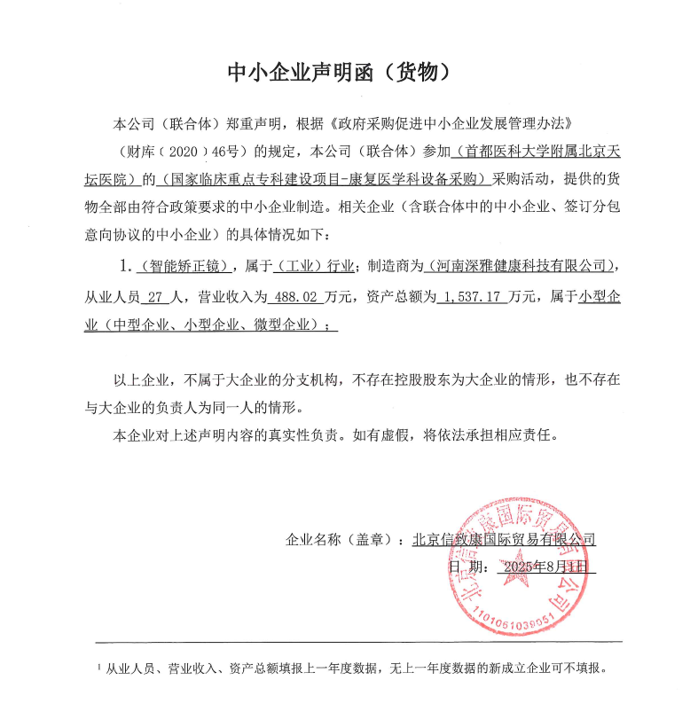 北京信致康国际贸易有限公司 智能矫正镜 ********* * **.*万元 **.*万元 按采购人要求