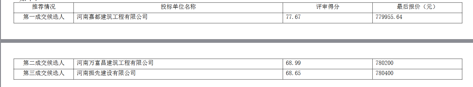 河南/南阳 中标结果