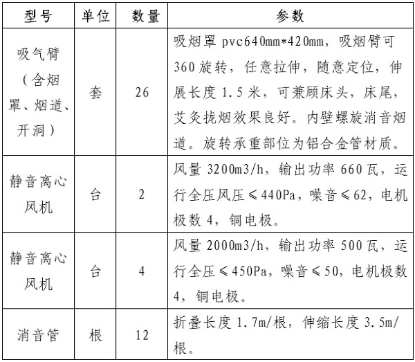 根据甘肃医学院附属医院(平凉市人民医院)《招标采购管理办法》的规定,我院拟对以下项目进行院内询价方式采购,欢迎符合资格条件的供应商前来报名。现将有关事项说明如下: 一、项目基本情况: 项目编号:**************** 项目名称:甘肃医学院附属医院(平凉市人民医院)艾灸排烟系统采购项目(二次) 预算金额:*****.**元(本项目费用涵盖货物的生产或采购、运输、装卸、人工、设备主机及附件、辅料、安装、调试、保险、售后、所有成本、管理费、利润、税金、各类相关风险费用等,即项目完成前产生的所有费用均包含在内),供应商应充分考虑各种可能的成本因素,确保报价的完整性和合理性。 二、项目地点:采购人指定地点 三、合同签订:自合同签订之日起,**个工作日内完成所有产品的供货、安装与调试工作。 四、付款方式:设备安装、调试完成,经甲方验收合格且安全运行**天后,支付合同总价款的**%,剩余**%待质保期满后,无任何质量问题一次性无息支付。 五、供应商资格要求: 满足《中华人民共和国政府采购法》第二十二条规定: *.须提供有效的营业执照、组织机构代码证、税务登记证、三证合一只需提供营业执照副本; *.须提供具有履行合同所必需的设备和专业技术能力的承诺函原件。 六、设备清单及技术参数要求: 七、服务要求: *.所供设备必须符合国家相关产品行业标准,同时满足医院询价公告中明确的规格、参数要求,提供产品合格证、出厂证明、有效的检测报告等文件。 *.根据医院安装场地布局(如艾灸治疗床位置、房间大小等)制定个性化安装方案,避免影响医院诊疗流程和空间使用等。 *.设备安装过程需符合消防安全规范,使用环保、阻燃材料,确保施工安全,减少对医院正常运营的干扰(如控制施工时间、降低噪声、安装现场设有警示标识及围挡等)。 *.设备系统运行需达到明显的排烟效果,烟雾不能出现泄漏,且设备具备良好的密封性能,保持室内空气质量,确保在长期运行过程中无故障、无异味泄漏。 *.设备安装完成后须进行调试,确保排烟效率达标(如排烟口吸力均匀、室内烟雾残留量符合健康标准),并培训医院操作人员正确使用系统(内容涵盖操作方法、日常维护、故障处理等)。 *.交付设备时须提供设备的外形尺寸图、安装布置图、电气原理图、管路连接图、系统使用说明书、维护手册等资料,确保医院相关人员能查阅操作和维护要点 *.供应商负责设备的运输、装卸及包装,确保设备在运输过程中不受损坏;包装应符合国家相关标准,具有防潮、防震、防锈等功能。 *.设备在运输、装卸、搬运、安装、调试过程中,应保障工作人员及第三方人员人身及财产安全,严格执行安全操作规范,如发生安全事故,均由中标人负责,给采购人造成的损失,由供应商负责赔偿。 八、质保期: 质保期*年,自设备验收合格之日起计算。质保期内,供应商需对系统因产品质量或安装问题导致的故障提供免费维修、更换零部件服务,以保障设备长期稳定运行。 *.质保期内,中标人须提供****小时售后服务,若出现质量问题需无条件退换。在质量保证期内,凡因设备本身质量问题或安装调试问题导致的故障,供应商免费提供维修服务,如需更换零部件,须使用原厂正品零部件,且更换后的零部件质保期重新计算。 *.接到医院维修要求后,*小时内予以响应,**小时内到达现场维修。紧急故障,*小时内到场,确保最短停机时间。 *.质保期内,供应商需定期进行免费巡检(如每*个月一次),及时排查潜在问题。若因系统故障导致无法正常排烟,需提供临时解决方案(如备用排烟设备),以减少对诊疗工作的影响。 *.定期进行回访,了解产品运行及维修响应等情况。免费提供设备使用维护培训、解答使用过程中的技术疑问,提供专业操作指导等服务。 九、验收标准及要求: *.设备安装调试完成后,采购人将组织相关人员进行验收。验收标准以询价公告中的技术参数要求、合同约定及国家相关标准为依据;供应商须提供设备的合格证明文件、使用说明书、维修手册等相关资料。? *.验收过程中,如发现设备存在质量问题或不符合合同要求,供应商应负责免费整改,直至验收合格并签署验收确认单。 十、报名时间: 从即日起至*月*日**:**前,按公告要求准备相应资料并装订成册,邮寄至甘肃省平凉市崆峒区崆峒东路***号甘肃医学院附属医院行政办公楼***室。 十一、响应文件开启: 时间:****年*月*日 **:** 地点:甘肃医学院附属医院行政办公楼*楼评标室 十二、评审方法: 询价成交原则:询价小组按询价公告和投标人提供的响应文件评审,在资质条件、采购需求均满足的同等条件下,以报价最低中标。 十三、联系方式: 联系人:张俊琴 联系电话:************ 后勤基建科 ****年*月*日
