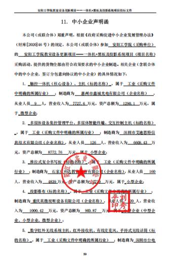 安阳工学院教室设备更新项目——一体机+黑板及投影系统项目-中标公告