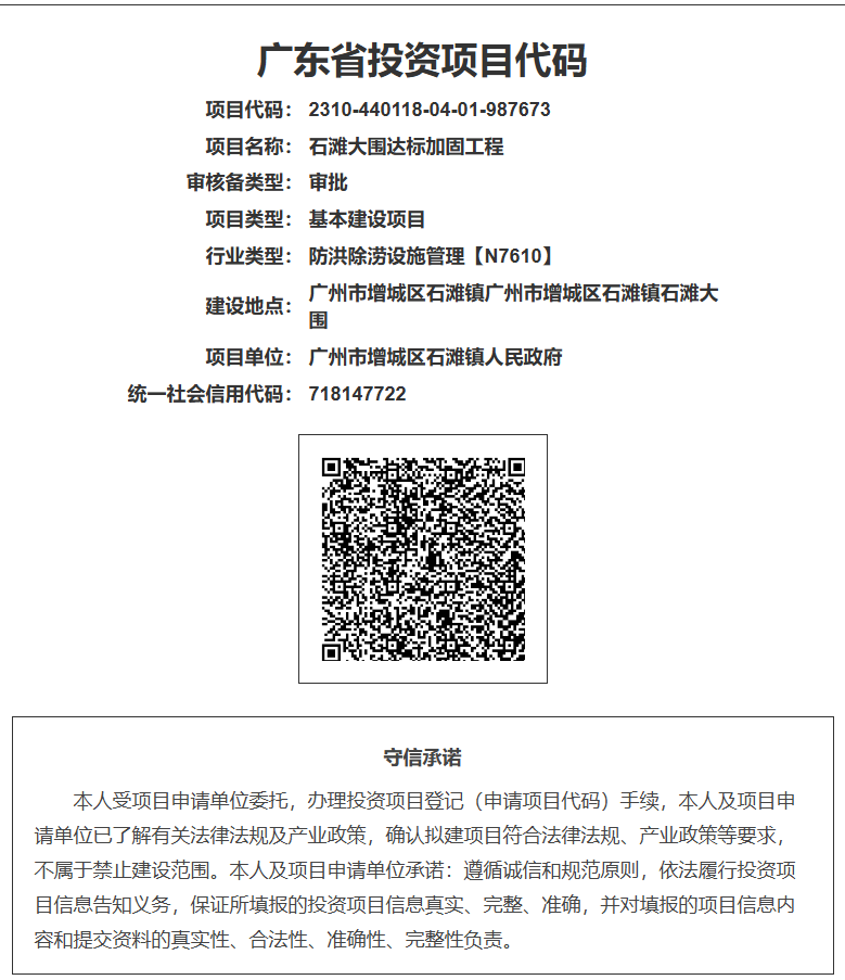 | 投资项目名称 | 石滩大围达标加固工程 | ||