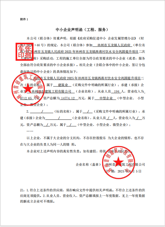 林州市五龙镇人民政府2025年林州市五龙镇西蒋村饮水安全巩固提升项目-成交公告