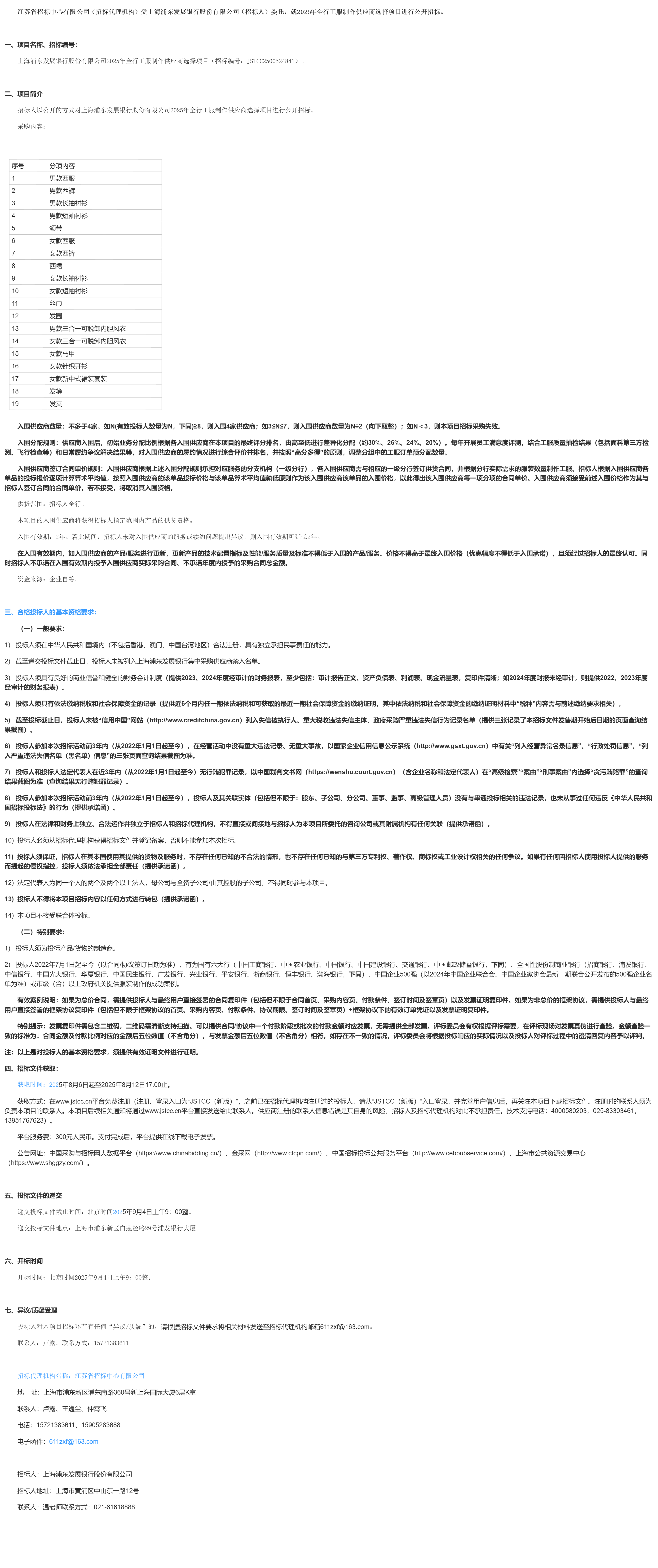 上海浦东发展银行股份有限公司****年全行工服制作供应商选择项目(招标编号:***************)。