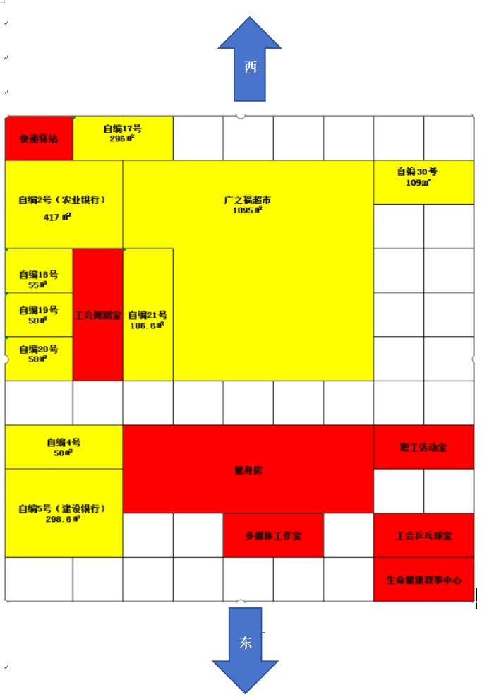 黄色标识为可出租或即将到期可出租铺位