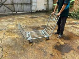 散烟推车采购 | 筐体尺寸:≥*****×≥****×≥**** 筐体材质: 空心钢管+细钢筋 筐体纵向承重轴:*根×直径***空心钢管 筐体横向承重轴:*根×直径***空心钢管 承重防护边栏:*根×直径***空心钢管 防漏网:*根×直径*.***横向细钢筋; 间距:*** 万向轮:*个×直径*** 万向轮座子:*个×直径**** 万向轮座子套轴:*根×直径**** 牵引拉钩:*根×直径*.****×*.*米 筐体重量:*.*** 装置最大承重量:***** | *.烟叶收购推车主体骨架采用Ø****.*整根镀锌管弯弧制作,弯弧处钢管饱满,不凹太多,副骨架采用圆钢筋或扁铁制作,轮子尺寸*寸,每辆*个(两个固定轮两个万向轮),整车重量****至****,具体按各站要求,每辆车重量误差在*.**%以内,车辆焊接饱满牢固,外观无毛刺,承重****以上; *.车辆尺寸:车上长≥******,下长≥*****,宽*****,轮宽*****,轮长*****。推把处需安装号牌板,刷铝粉漆。 |