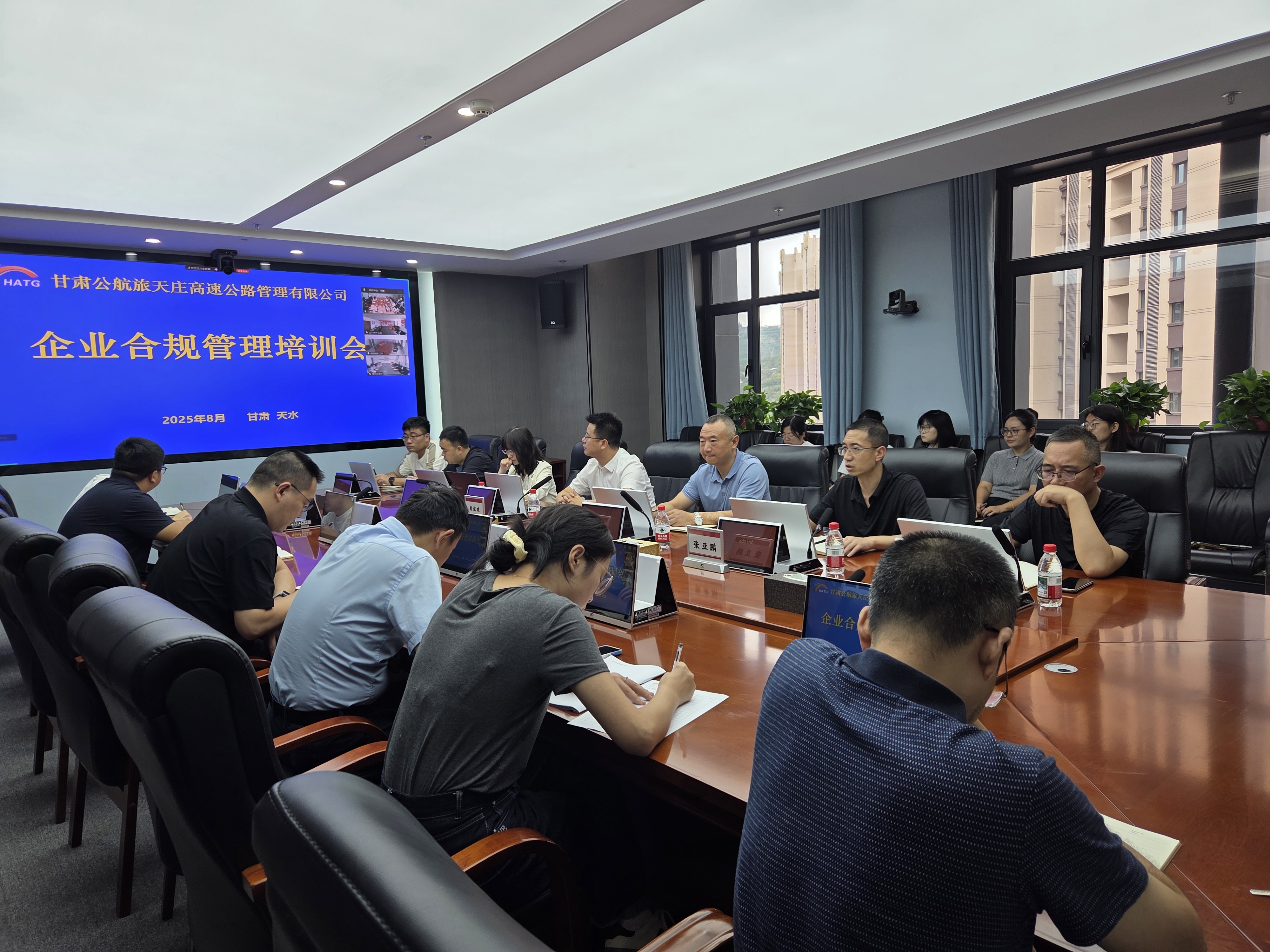*月*日,天庄公司组织开展公司合规管理培训,培训采用“线下+线上”的方式进行,公司在家领导、各部门负责人及业务人员在主会场参加,天庄养护公司、天庄高速清水收费所在分会场参加。