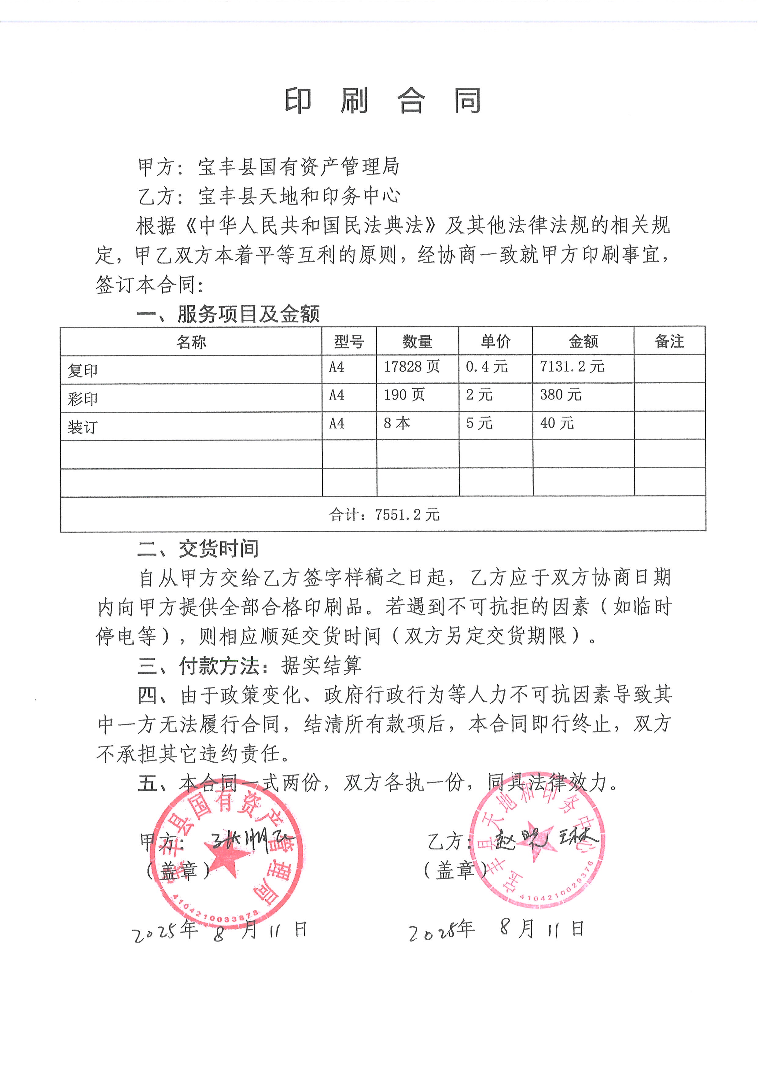 | *.供应商(乙方):宝丰县天地和印务中心 | ||||||||||||