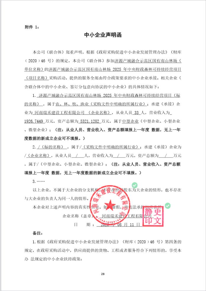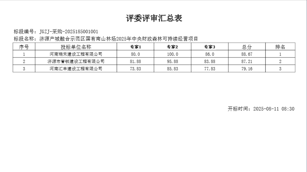 济源产城融合示范区国有南山林场2025年中央财政森林可持续经营项目成交公告