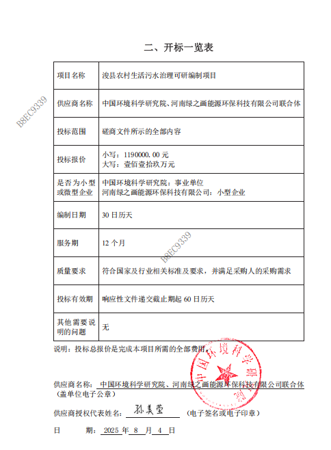 浚县卫溪街道办事处浚县农村生活污水治理可研编制项目*成交公告