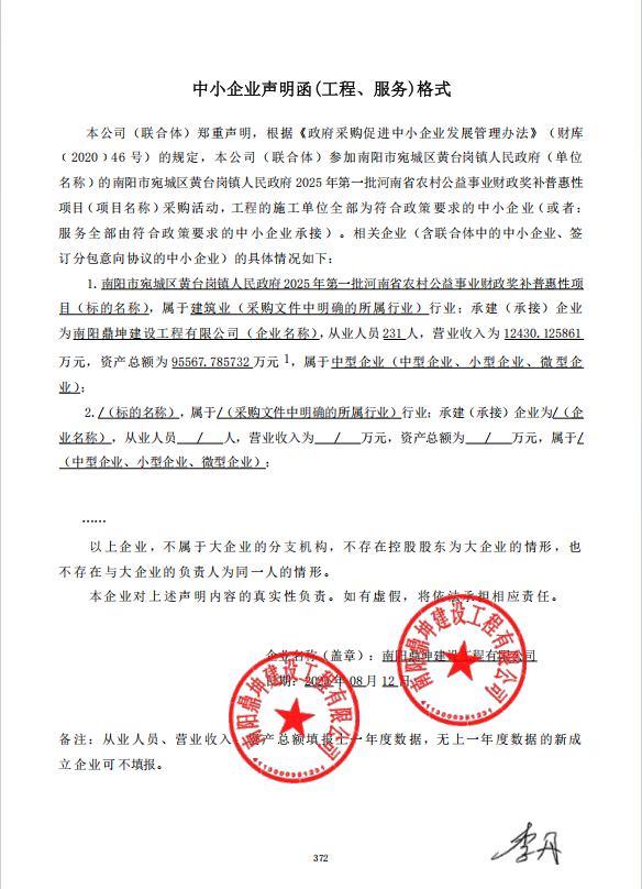南阳市宛城区黄台岗镇人民政府2025年第一批河南省农村公益事业财政奖补普惠性项目-成交公告